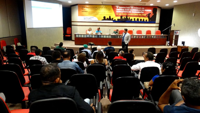 O Fórum de Defesa das Carreiras do Poder Executivo realizou, na última sexta-feira (12), no auditório da OAB-MA, o seu 2º Seminário, que tinha como objetivo discutir as propostas dos pré-candidatos ao Governo do Maranhão em relação à política salarial dos servidores públicos do Estado. Para ocasião foram convidados agentes políticos que já estão se projetando como futuros pré-candidatos ao comando do Executivo, incluindo o governador Flávio Dino, candidato à reeleição. No entanto, apenas o senador Roberto Rocha havia confirmado presença, mas desmarcou em razão de assuntos familiares.