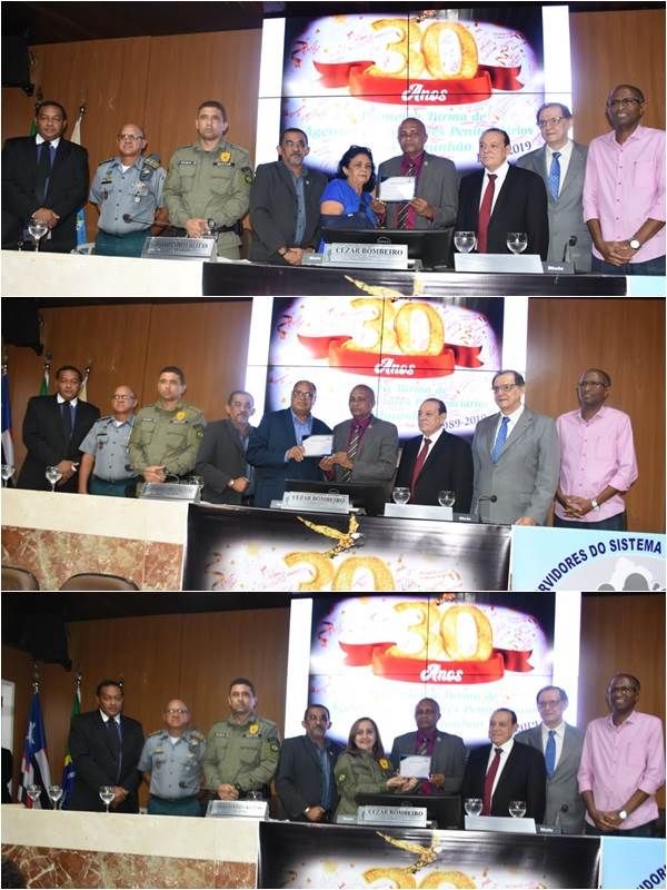 A solenidade foi iniciada pelos vereadores Cézar Bombeiro e Joãozinho Freitas e logo foram convidados para compor a mesa dos trabalhos, o ex-Secretário de Segurança Pública e ex-deputado estadual Raimundo Cutrim, o advogado e ex-Secretário de Justiça e Administração Penitenciária, Sérgio Tamer, o Gestor de Segurança Penitenciária, Ricardo Delmar Carneiro , o presidente do Sindspem, Márcio de Deus, o Major Raimundo Alves Barbosa, da Academia de Policia Gonçalves Dias e o presidente do Sintsep, Cleinaldo Bil Lopes.