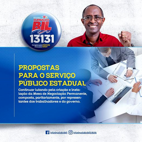 O sindicalista Cleinaldo Bil Lopes é um dos poucos candidatos a deputado estadual que tem legitimidade para pedir votos em todo o Maranhão. Como presidente do SINTSEP e Coordenador do Fórum de Defesa das Carreiras do Poder Executivo, com os dirigentes dos sindicatos de trabalhadores do serviço público, nunca deixou de lutar e reivindicar direitos dos servidores públicos junto ao Governo do Estado.