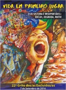 “Este sistema é insuportável: exclui, degrada, mata!” é lema da 22ª edição do Grito dos Excluídos, que tem como tema “Vida em primeiro lugar”. A mobilização, com auge em 7 de Setembro, dia da Independência do Brasil, questiona e denuncia as várias formas de desigualdades do país, apontando qual o real papel do Estado diante das exclusões.