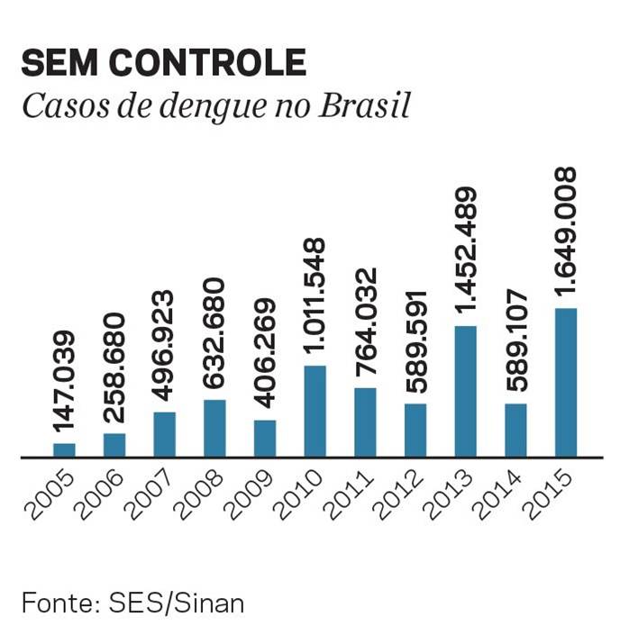 A fatura de três décadas de descaso é elevada. Em 2015, um novo recorde: 1,6 milhão de infectados por dengue. Polivalente, o mosquito passou a transmitir a febre chikungunya e, agora, encarrega-se de dar carona ao sexagenário, mas ainda pouco conhecido, zika. Até o momento, o Ministério da Saúde confirmou o diagnóstico de 270 bebês com microcefalia ou malformação do cérebro, seis deles por exposição comprovada ao vírus. Outros 3.448 casos seguem sob investigação.