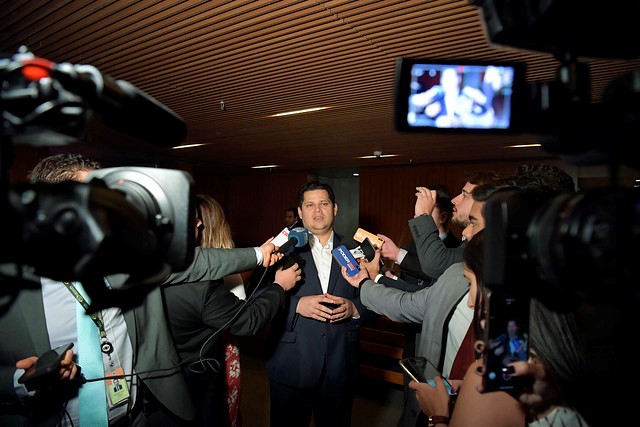 Algumas horas antes, no fim da tarde, Davi Alcolumbre já havia declarado em entrevista coletiva à imprensa a intenção de questionar o STF sobre a decisão de Barroso.