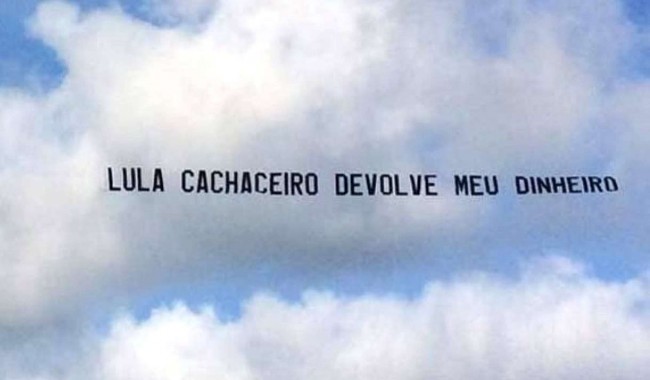 O empresário disse no começo do mês que iria patrocinar um avião para sobrevoar praias do litoral catarinense exibindo frases sugeridas por seus seguidores. Entre as frases estão “Lula cachaceiro, devolve o meu dinheiro” e “Lula na cadeia, eu com o pé na areia”.