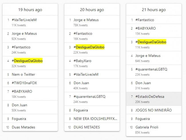 A Hashtag “Desligue da Globo”, parece ter atendido uma sugestão do ministro da Saúde Luiz Henrique Mandetta, que pediu aos brasileiros que desligassem um pouco a televisão.