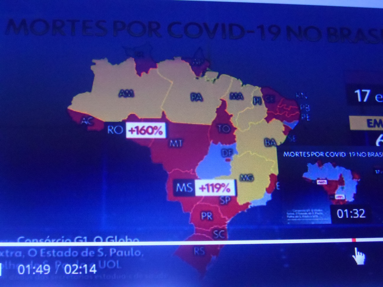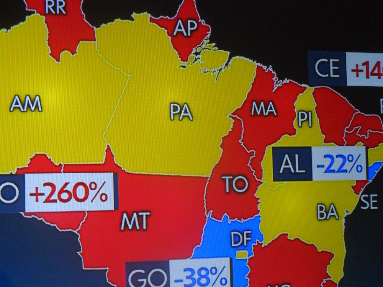 O Jornal Hoje, da Rede Globo de Televisão, edição desta tarde, mostrou o mapa da realidade da contaminação da covid-19 em todo o país. O Maranhão que vinha de um logo período de estabilidade com a cor amarela, passou hoje para o vermelho, o que significa um aumento considerável de contaminação e naturalmente o registro de aumento de mortes.