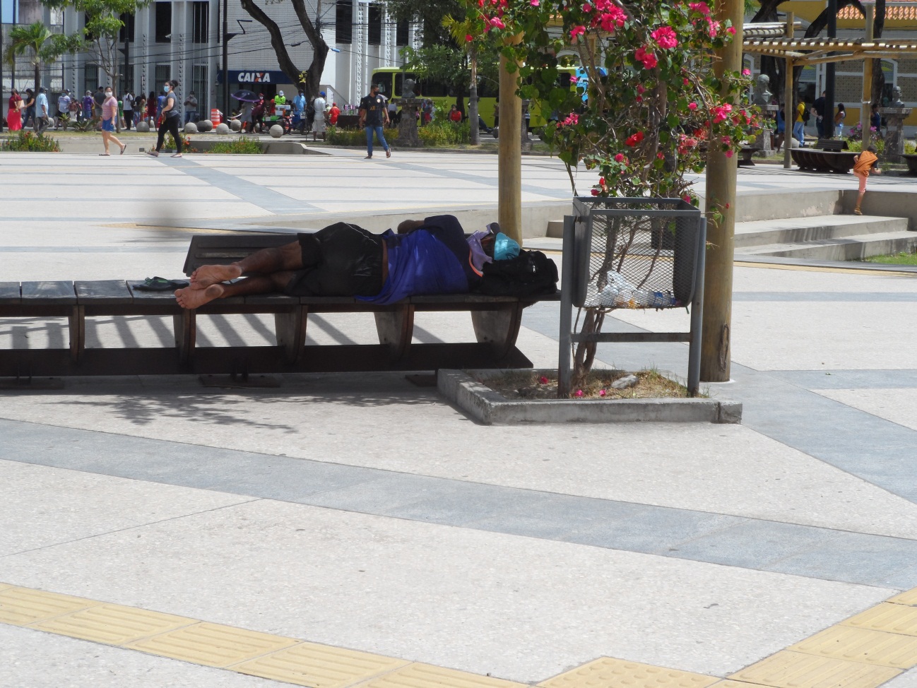 A praça do Pantheon é também dos drogados e os bancos servem de camas