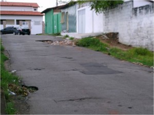 A foto mostra uma rua no bairro Vinhais no prolongamento da esquina do colégio Nascimento de Morais. O local tem uma movimentação intensa de veículos nos dois sentidos e nele existiam muitos buracos. Há mais de dois anos eles pedem a recuperação da artéria, mas nunca foram atendidos, até quando foram surpreendidos por uma patrulha de Semosp, que indagada pelos moradores responderam que a sua seria completamente restaurada e sinalizada.