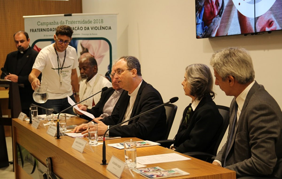 Na manhã desta quarta-feira, 14 de fevereiro, na sede provisória da Conferência Nacional dos Bispos do Brasil (CNBB), foi aberta oficialmente a Campanha da Fraternidade (CF) 2018. Este ano, a Campanha trata da “Fraternidade e a superação da violência”. O presidente da entidade, cardeal Sergio da Rocha, e o secretário-geral, dom Leonardo Steiner, receberam autoridades para o evento: a presidente do Supremo Tribunal Federal (STF), ministra Cármen Lúcia, o coordenador da Frente Parlamentar pela Prevenção da Violência e Redução de Homicídios, deputado Alessandro Molon, e o presidente da Comissão Brasileira de Justiça e Paz (CBJP), Carlos Alves Moura.