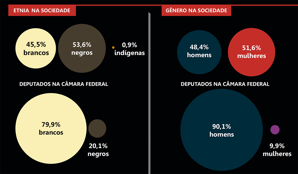 “A sociedade brasileira é racista, e a estrutura partidária reproduz o racismo. O interior dos partidos não é necessariamente democrático, e quem está nas mesas diretoras, no comando das decisões, são homens brancos”, observou o cientista político Cristiano Rodrigues, da Universidade Federal de Minas Gerais (UFMG).
