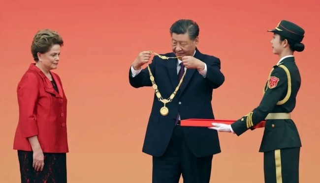A ex-presidente Dilma Rousseff recebeu neste domingo (29) a Medalha da Amizade da China, maior honraria concedida pelo governo ditatorial do país comunista a um estrangeiro. Dilma preside o Novo Banco de Desenvolvimento (NBD), vinculado ao grupo dos Brics, com sede em Xangai, desde 2023.