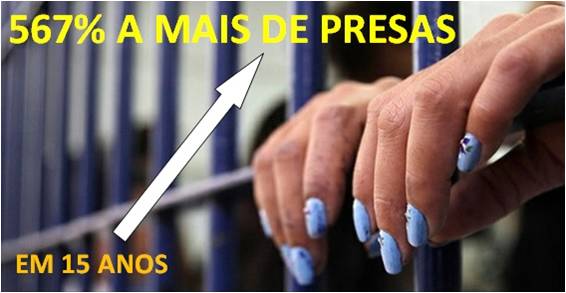 Segundo o relatório Infopen Mulheres, a população penitenciária feminina subiu de 5.601 para 37.380 detentas entre 2000 e 2014, um crescimento de 567% em 15 anos. A taxa é superior ao crescimento geral da população penitenciária, que teve aumento de 119% no mesmo período.