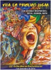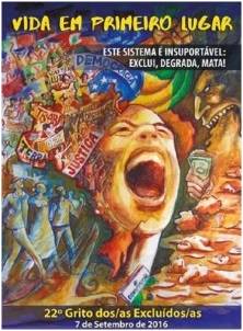 “Este sistema é insuportável: exclui, degrada, mata!” é lema da 22ª edição do Grito dos Excluídos, que tem como tema “Vida em primeiro lugar”. A mobilização, com auge em 07 de Setembro, dia da Independência do Brasil, questiona e denuncia as várias formas de desigualdades do país, apontando qual o real papel do Estado diante das exclusões.