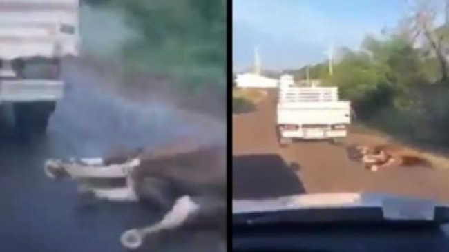 Um cavalo foi amarrado com uma corda na carroceria de uma caminhonete e arrastado por mais de dois quilômetros na rodovia BR-163, próxima da cidade de Capitão Leônidas Marques, no Paraná.