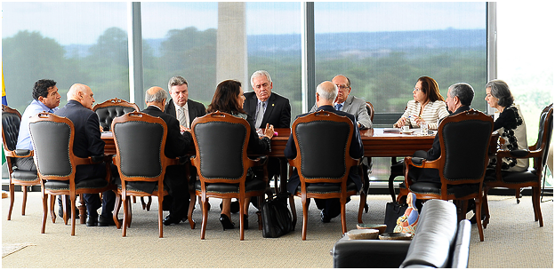 Participaram da reunião também os presidentes do Superior Tribunal de Justiça, Laurita Vaz; do Tribunal Superior Eleitoral, Gilmar Mendes; e do Tribunal Superior do Trabalho, Ives Gandra Martins Filho.