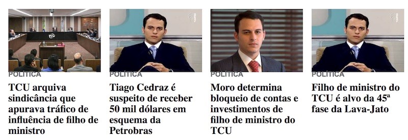 Já em 2017, o jornal “O Globo” reproduziu algumas notícias envolvendo Tiago Cedraz.