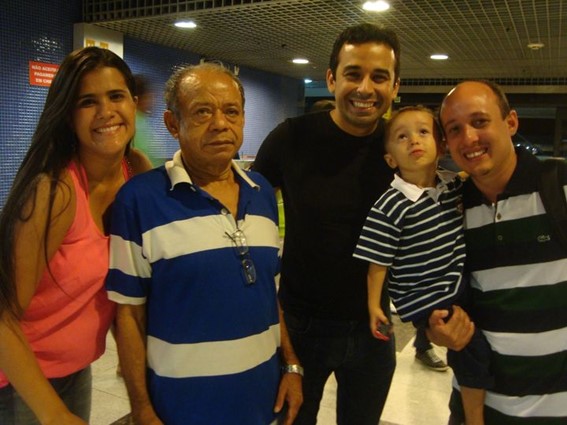 Alexandra e o marido Antonio Carlos Filho ladeiam o pai Antonio Carlos e ao lado Aldir Dantas Jr com o filho André Luís