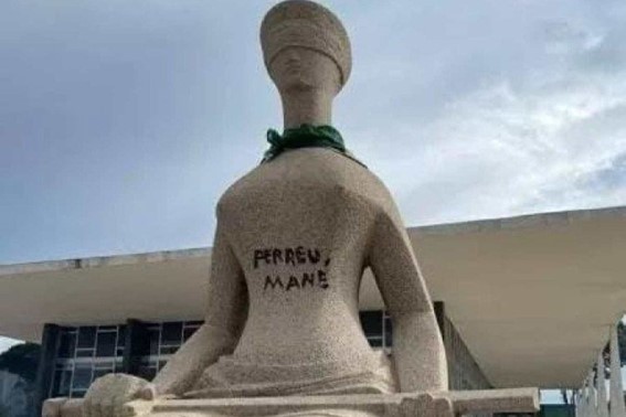A Polícia Federal prendeu nesta sexta-feira (17/3) uma mulher acusada de pichar a expressão “perdeu, mané” na estátua da deusa Têmis, fixada em frente ao prédio do Supremo Tribunal Federal (STF). Também foi preso um homem que aparece em vídeo sentado na cadeira do ministro Alexandre de Moraes, arrancada do plenário. A corporação deflagrou uma ação em nova fase da operação Lesa Pátria para cumprir 42 mandados de busca e apreensão e 32 de prisão, contra acusados de participação nos ataques de 8 de janeiro.