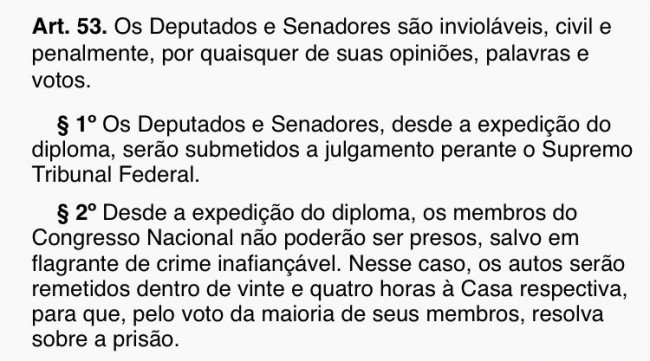 Nesse sentido, a Constituição é extremamente clara, em seu artigo 53: