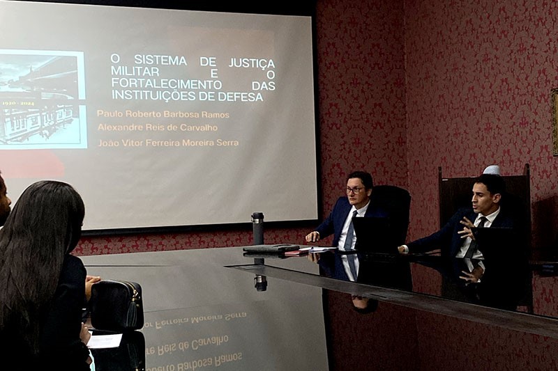Na ocasião, o assessor jurídico-chefe da Procuradoria de Justiça Militar em São Luís, João Vitor Ferreira Moreira Serra, defendeu o artigo “O Sistema de Justiça Militar e o fortalecimento das Instituições de Defesa”, e tratou sobre a atuação do Sistema de Justiça Militar, partindo das premissas, resultados e objetivos da instalação da PJM São Luís, como vetor de fortalecimento das Instituições de Defesa, com ênfase no Parquet das Armas como guardião social da hierarquia e disciplina, e como vetor de potencialização da soberania nacional, fundamento da República Federativa do Brasil.