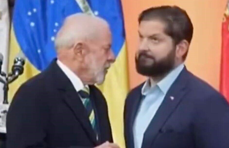 Fotos mostram Boric olhando para o alto, impaciente, enquanto Lula tentava defender apoio a Maduro contra suas convicções democrática.