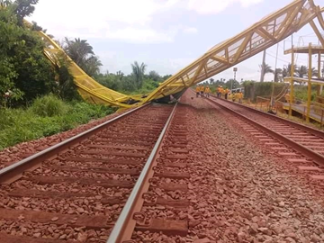 A causa da queda de parte da passarela, ainda em construção no km135, em Arari, está sendo investigada. “A obra está paralisada.”